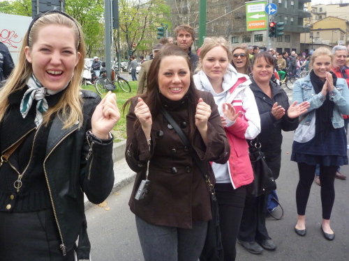 Erstaunlich diszipliniert verhalten sich bisher die Autofahrer, die hier wegen des Marathons in einer langen Schlange stehen. Das habe ich in Mailand schon ganz anders erlebt. Mal sehen, wie es später in der Innenstadt wird.
