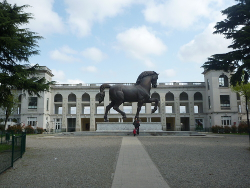 Ein Schmuckstück, wenn auch aus ganz anderer Zeit, ist die Galopprennbahn an gleicher Stelle. Gegenüber dem monumental anmutenden Fußballtempel wirkt sie eher unscheinbar und kaum einer schenkt der Sportstätte Beachtung. Wirft man aber einen Blick durch das Eingangsportal, entdeckt man das größte Pferdestandbild der Welt (7 Meter), das nach Plänen von Leonardo da Vinci gefertigt wurde. Mit Sport und Unterhaltung geht es weiter, denn links sehen wir nur ein paar Kilometer weiter die Event- und Sportarena Pala Sharp mit über 8000 Sitzplätzen.