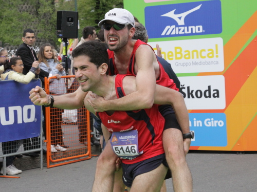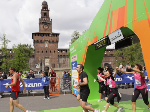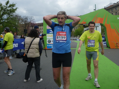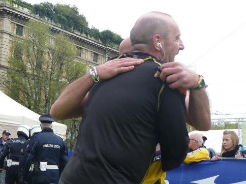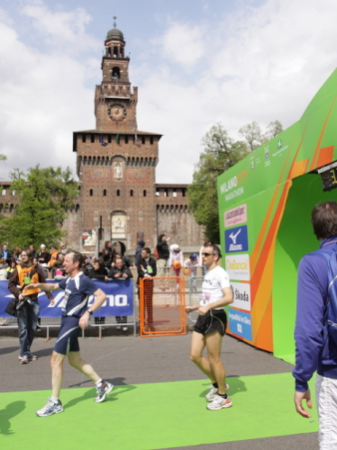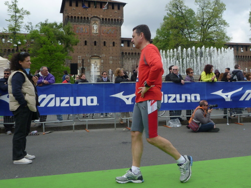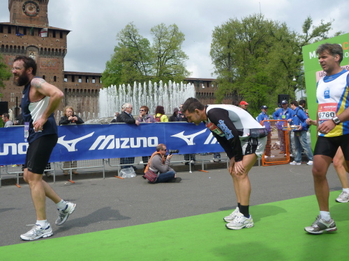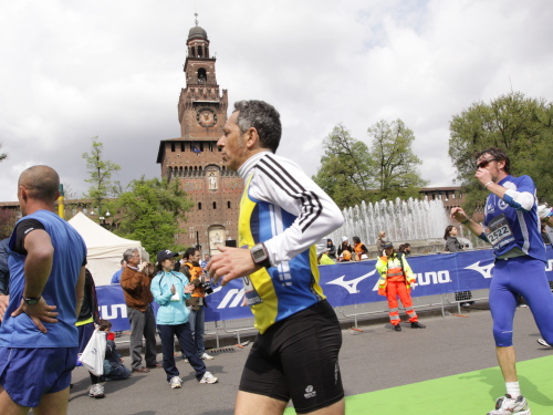 Wieder erreichen wir den Corso Sempione, der dank Radio Dee Jay noch immer einer Freiluft-Disco gleicht. Entlang des Parco Sempione geht es teilweise auf holprigem Pflaster in Richtung des Castello. Noch einmal motiviert uns eine Live-Band und dann gibt es endlich auch einmal eine größere Ansammlung von Zuschauern, die äußerst temperamentvoll für einen stimmungsvollen Zieleinlauf sorgen.