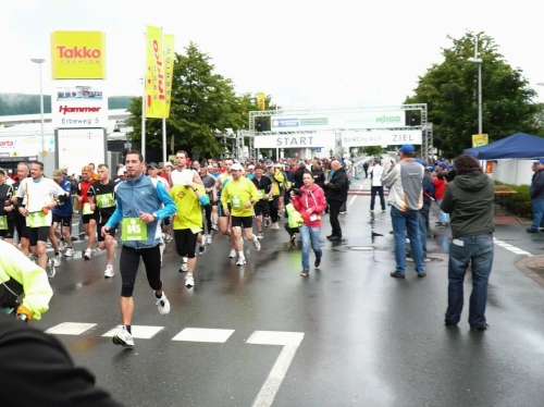 Normalerweise verliere ich nicht viele Worte über Sponsoren, schließlich erhalten die ja eh ihren Werbeeffekt, doch heute ist es anders: Das Möbelhaus ist auch Organisator - und ein guter. Von der Anmeldung bis zum Internet-Ergebnisdienst wird alles von denen gemacht. Nur eine Handvoll Polizisten oder Feuerwehrleute passen an neuralgischen Punkten auf, der Rest wird von Angestellten des Möbelhauses oder deren Tochterfirmen erledigt.