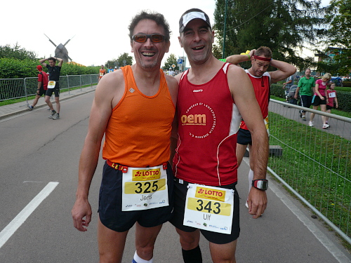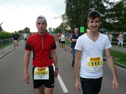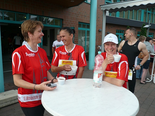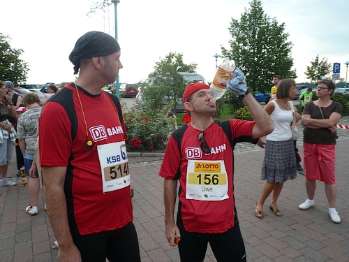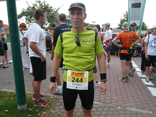 Falk Cierpinski, der andere Sohn vom Waldemar (Marathonbestzeit: 2:13:30) kümmert sich darum, dass die Schülerstaffeln motiviert sind. Er fragt mich, ob man so kurz nach den 100 Meilen in Berlin schon wieder laufen kann. Man kann, mit einer Großpackung Hallorenkugeln. Das ist die Ossivariante der Mozartkugel mit 448 kcal.