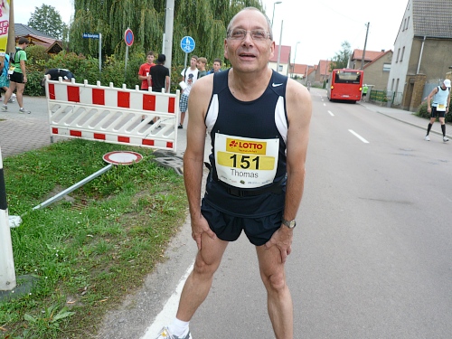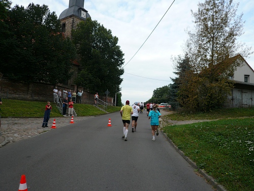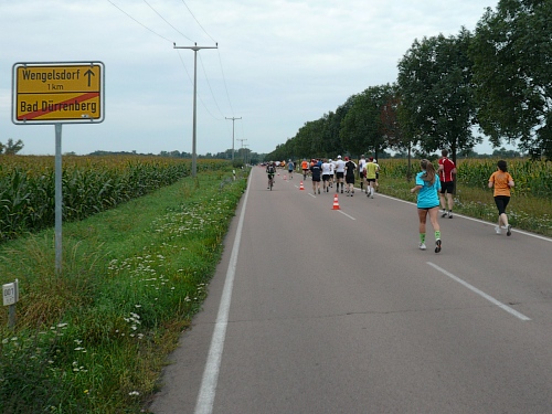 Start 9 Uhr, überwiegend Staffelläufer. Es geht in einem Dreieckskurs zunächst nach Kirchfährendorf, dann Wengelsdorf. Ruhige kleine Dörfer, sehr schön, sehr nett, sehr angenehm zu laufen. Warum das steinzeitliche Skelett in Bauchlage bestattet wurde? Vielleicht sollte er nicht mehr die Oberfläche sehen.