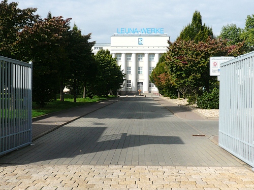 Zurück nach Spergau, dahinter beginnen schon die Leunawerke, einer der größten Standorte der chemischen Industrie in Deutschland, die Laufstrecke ist nicht schön, lässt aber Zeit für Gedankengänge. Die Leunawerke wurden im ersten Weltkrieg gegründet. Die BASF stellte zunächst bei Ludwigshafen aus Amoniak Sprengstoff her. Um vor französischen Luftangriffen sicher zu sein, wählte man einen zweiten Standort in Mitteldeutschland aus, wo reichlich Braunkohle vorhanden ist. Im zweiten Weltkrieg wurde hier synthetisches Benzin durch Kohleverflüssigung hergestellt. Die Bombardierung der Leunawerke vom Mai 1944 war ein entscheidener Schlag der Alliierten.