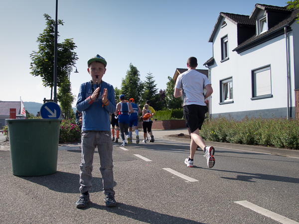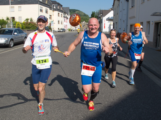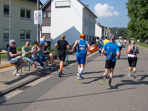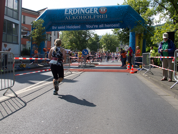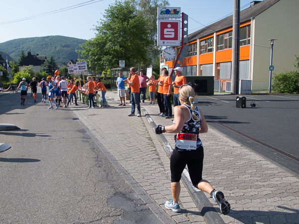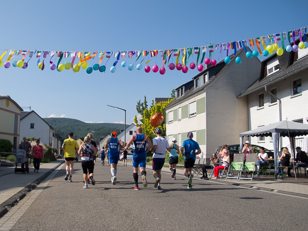 Die Stimmung im Ort tobt und überall stehen Läufer zwischen dem Patchwork aus Fachwerkhäusern und jubeln uns zu. Es ist erst kurz vor 9.30 Uhr. Eine halbe Stunde bis zum Start bleibt den zehn Kilometer Läufern, bevor sie ebenfalls nach Koblenz laufen werden.