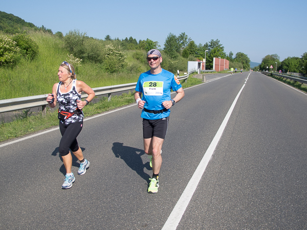 1:58 Stunde. Gleich ist es 10:30 Uhr, erst in einer Dreiviertelstunde starten von hier aus die Halbmarathonläufer, Walker und Nordic-Walker. Dirk, unter dem Einfluss des pulsierenden und applaudierenden Läufer-Publikums zieht noch zusätzlich am Gashahn.