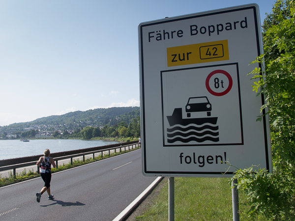 Piep, piep über die Zeitmessmatte, einmal hundertachtzig Grad herum. Das ging mir dann doch zu schnell. Gleich im doppelten Wortsinn. Will man uns nicht in Boppard haben, schießt es mir durch den Kopf. Wir kommen nicht in den Genuss der Bopparder Uferpromenade, der großen Anlegestelle für Schiffe.
