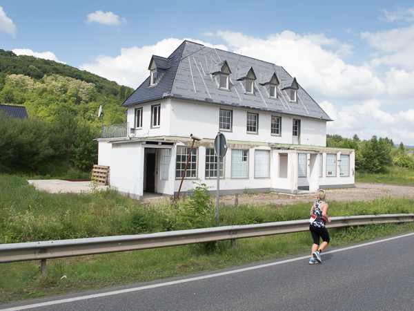 Wieder laufe ich durch die Eisenbahn-Miniatur-Landschaft entlang der Bahntrasse. Zurück durch die gleichen Ortschaften und wieder entlang der Bahntrasse, dem Rhein, vorbei an Wiesen, Felder und Fachwerkhäusern, mit der Konsequenz des Entrücktseins, das mich zu der Frage bringt: Ist man eigentlich noch Rheintourist, wenn man sich nichts mehr anschaut? Ich befinde mich in einem seltsam paradoxen Zustand - eine innere Leere, an der man genug hat.