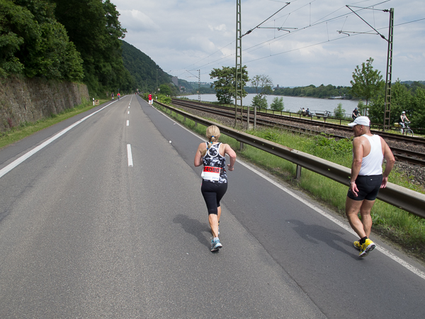Erst auf den letzten Kilometern vor Koblenz geht das Gefühl endlich verloren. Erst jetzt wird mir bewusst, auf welch schönem Boden ich die letzten Stunden gelaufen bin, wenn auch nur verkürzt. Meist verlief die Strecke des Mittelrhein-Marathons von Oberwesel bis nach Koblenz. Der jetzige Kurs mit seiner Wendemarke in Boppard ist für die Organisation ganz klar kostengünstiger, aber dem Marathon gehen viele wunderschöne Rheinkilometer, wie zum Beispiel St. Goar und St. Goarshausen mit der Loreley, verloren. Dennoch schließt Robert Kretzer nicht aus, dass man in der Zukunft wieder in Oberwesel startet. Das wäre dem Mittelrhein Marathon nur zu wünschen.