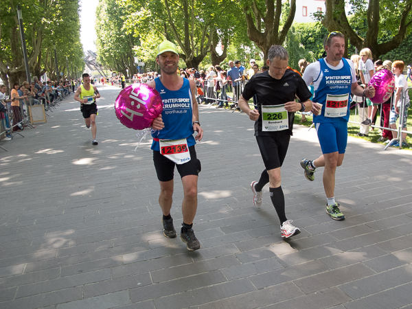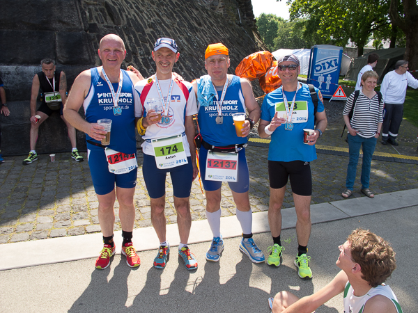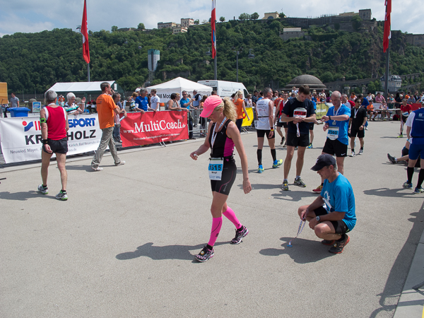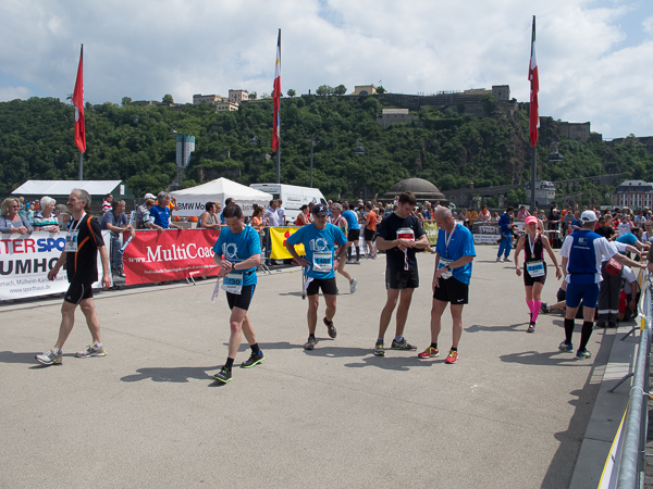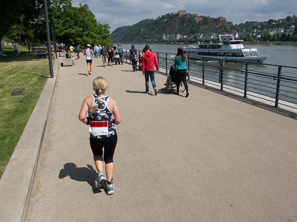 Noch ein letzter Kilometer. Die Stimmung auf der Rheinpromenade ist so pittoresk, als hätte sie der Tourismusverein engagiert. Eine Flaniermeile von einem knappen Kilometer Länge. Das Hinterteil des wilhelminischen Pferdes, auf dem der erste Deutsche Kaiser reitet, sieht man schon von weitem. Jetzt nur noch wenige Schritte. Ich werde überholt. Obwohl es eine Frau ist, vielleicht auch noch aus meiner Altersklasse, ist es mir egal. Auch sie hat unterwegs gekämpft. Ich gönne ihr den Zieleinlauf.