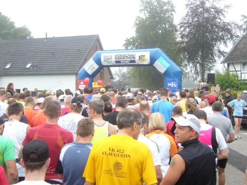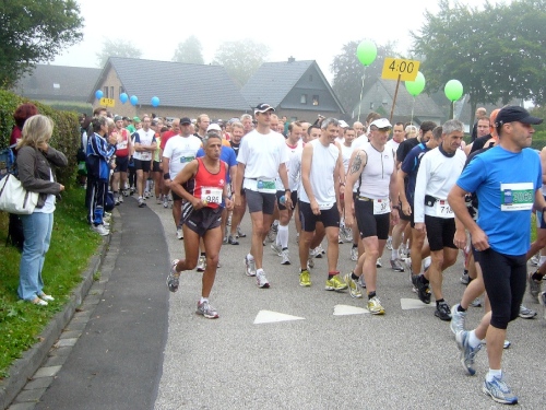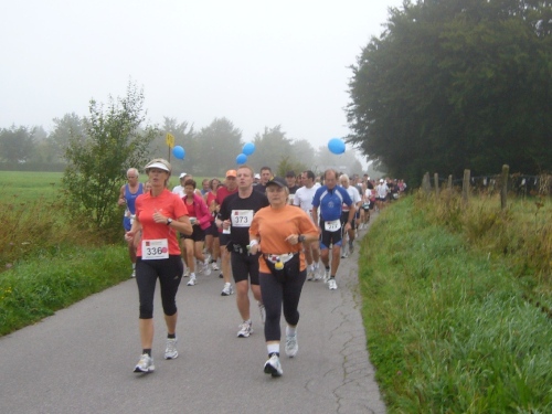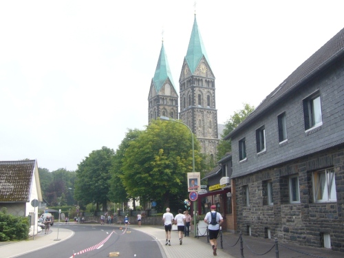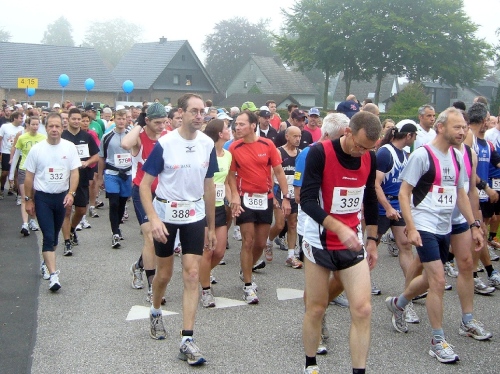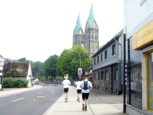 Kurz hinter Km 10 kommen wir in das kleine Dorf Widdau (ca. 80 Einwohner), wo schon viele Anwohner auf den Beinen sind und die Läufer begeistert empfangen. Der WDR machte Widdau in den 80ziger Jahren bekannt durch den Kabarettisten „Hubert vom Venn“, der sich wöchentlich einmal aus der einzigen Telefonzelle des Dorfes „Live aus der Telefonzelle in Widdau“ meldete.