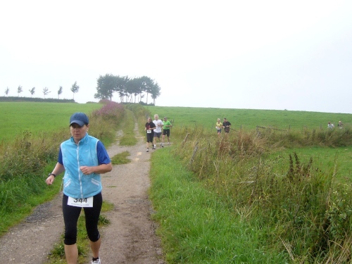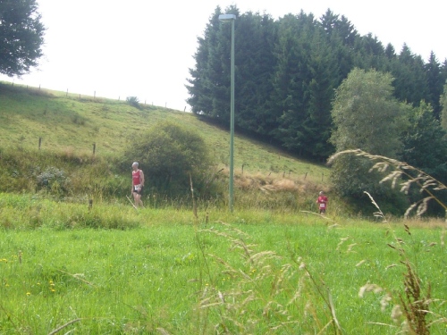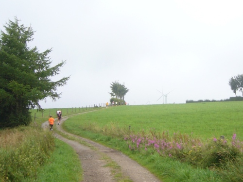 Der weitere Weg führt uns in ständigem Auf und Ab durch das Fuhrtsbachtal, durch Wald und Wiesen. Hier überholen wir ständig Walker. Einigen Gesprächsfetzen kann ich entnehmen, dass viele der Teilnehmer hier jedes Jahr starten. Auch viele Belgier und Niederländer sind unterwegs. Dann wartet eine weitere ca. 300m lange Steigung zum Gut Heistert auf uns. Kurz davor ist ein weiterer Verpflegungspunkt (Km 26,5).
