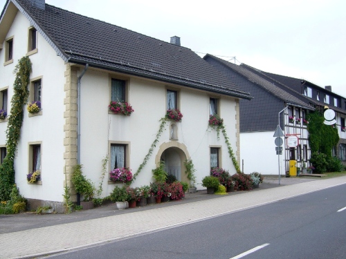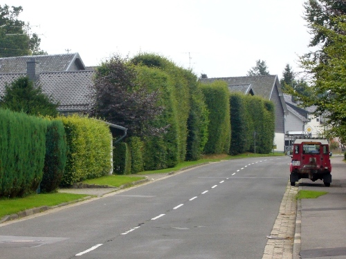 Was auch sehr auffallend ist in Kalterherberg, sind die haushohen Buchenhecken, die die Menschen hier bereits vor Generationen zum Schutz der Häuser angelegt haben. Eine Hecke ist schöner und größer als die andere und besondere Kennzeichen der Region.