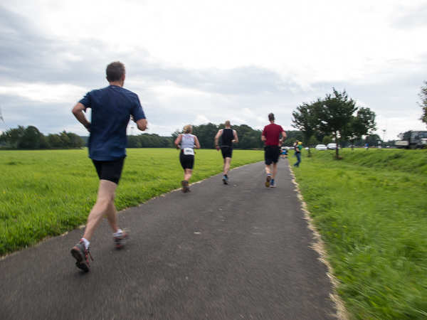 Staffelwechsel bei etwa Kilometer 10,5 KM beziehungsweise 24,4 KM Ultra-Kilometern im kleinen, aber temperamentvollen Dorf Widdau. „Andrea, Andrea!“ ruft es hinter mir. Ich drehe mich um und kann es kaum glauben. Aber es stimmt, es ist Andrea, die als Staffelläuferin unterwegs ist. „Ich bekomme Gänsehaut“, sagt sie. Seit sie aus dem Rhein-Main-Gebiet vor vielen Jahren mit ihrer Familie weggezogen ist, haben wir uns nicht mehr gesehen. Und jetzt kommt die gebürtige Nordamerikanerin und vierfache Mutter einfach so daher. Für ein paar kurze Sätze läuft sie neben mir, dann muss sie weiter, die nächste Staffelläuferin wartet schon. Es gibt doch immer wieder schöne Zufälle.