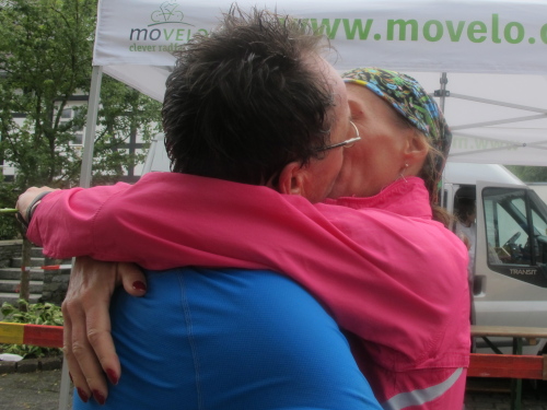 Die Siegerehrung hat Kultpotenial. Als Erster betritt der Sieger das Podest. Natürlich ist es André Collet. Knapp sei es diesmal gewesen und lange hätte es gar nicht nach einem Sieg ausgesehen. Umso mehr strahlt der sympathische Lockenkopf. Nicht weniger glücklich ist Antje Möller, die schnellste Marathonfrau. Als dann die Siegertrios auf dem Podest versammelt sind, erklingt als Siegerhymne „One moment in time“ live und in der Version des Musikvereins. Der Dorfplatz ist gerammelt voll und alles schaut zur Bühne. Wenn ich richtig sehe, muss der André zweimal schlucken. Applaus beim letzten Ton und Abgang. Olympia auf dem Dorf. Herrlich.