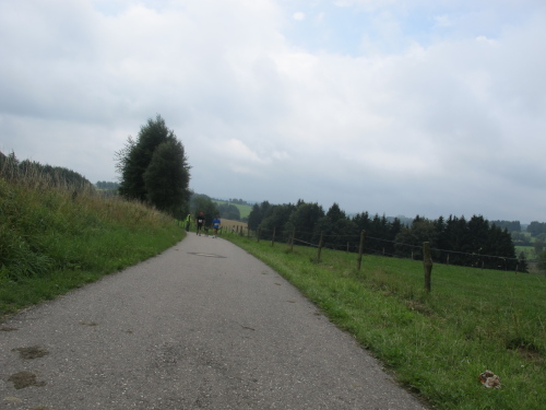 Wir sind auf einer schmalen Teerstraße im Leyloch, so heißt auch der kleine Gasthof links. Der gleichnamige Ort, man sieht ihn nicht, gehört zu Belgien. Die Straße zieht sich lange hin und ist auch ziemlich steil.