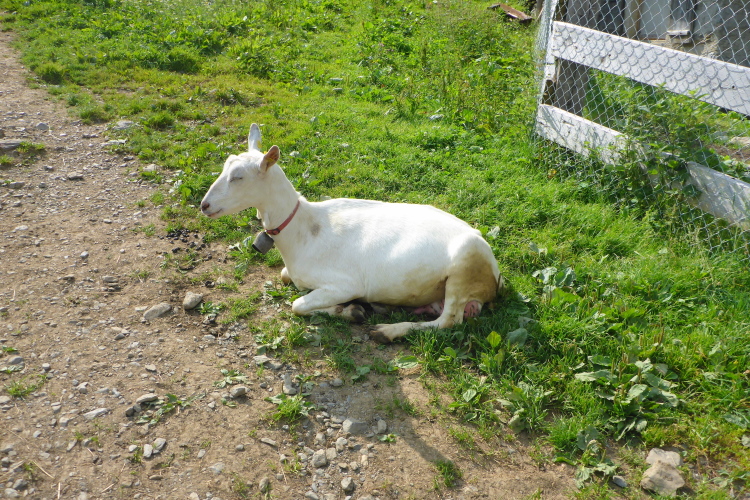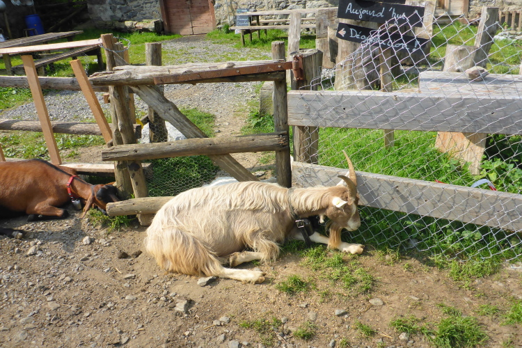 Genauso steil wie es hochging, geht es jetzt wieder herunter. Wir verlieren schnell an Höhe. Glocken-Gebimmel kündigt eine Alm an. Eine Frau sieht uns kommen und spielt uns ein Ständchen auf dem Quetschkasten. Wir kommen wieder in den Wald. Die Steine werden runder und heller. Viele Wurzeln überziehen den Weg. Dann Asphalt. Das bedeutet, dass wir an der zweiten Verpflegung an der Pont de Nant sind.