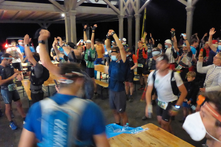 Unvermittelt kommen wir nach Sepey. Es wird langsam dunkel und wir sind nicht so weit vom Cutoff. Ich wasche mich und ziehe frische Kleidung an. Auch wechsele ich die Schuhe und esse drei Gabeln Spaghetti mit Tomatensauce. Wir machen uns fertig für die Nacht und laufen mit Stirnlampe weiter. Alles etwas hektisch. Ich habe sogar vergessen, ein Foto zu machen. Egal. Wir sind gut drauf. Wir haben das Cutoff von 18 Stunden ganz gut geschafft und haben schon mehr als 60 Kilometer.
