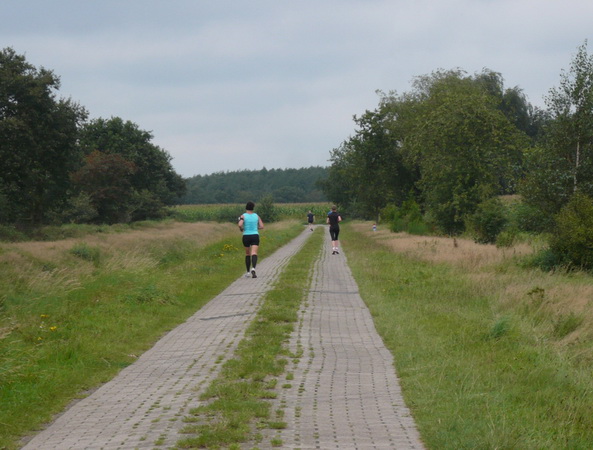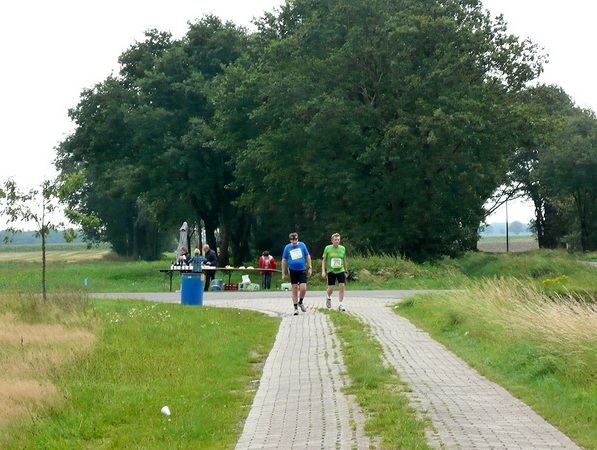 Hier bläst uns der Wind direkt von vorn und lässt uns wie gegen eine Mauer laufen. Wenn man heute etwas bemängeln wollte, so ist es der Wind, der zwischendurch immer mal wieder bläst. Aber dafür kann der Veranstalter nichts.