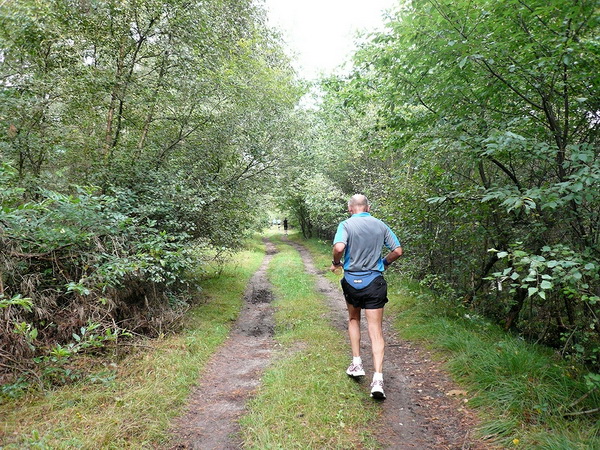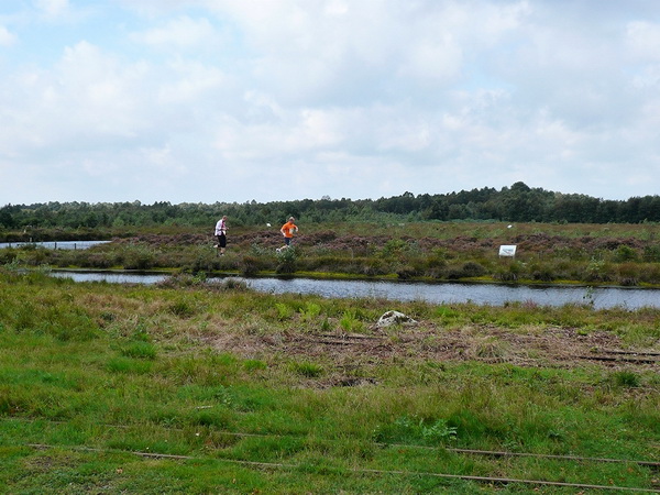 Die Marathonis laufen vor dem Ziel links ab, denn sie wollen mehr Moor, More and more. Also auf in die zweite Runde. Ca. 60 Teilnehmer verteilen sich nun über die Strecke und man läuft mit sich und der Natur allein. Zunächst aber nur fast, denn inzwischen sind die Walker gestartet und es heißt, sie im Zick-Zack-Kurs überholen. Die Stille ist herrlich, dazu die schönen Lichtspiele in den Tümpeln. Wer Landschaftsläufe liebt, muss einfach mal hier her.