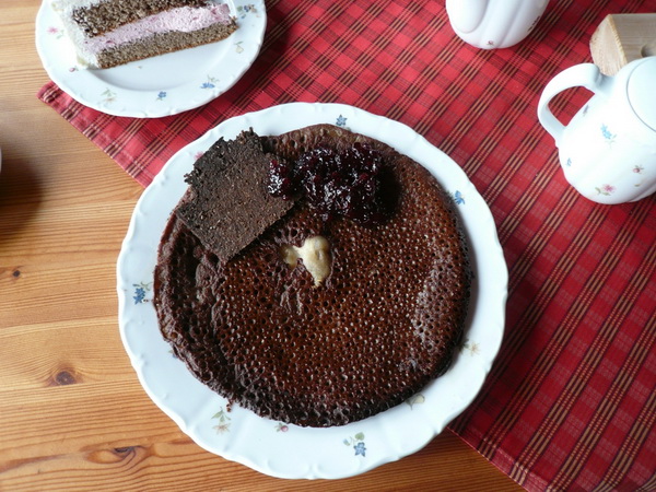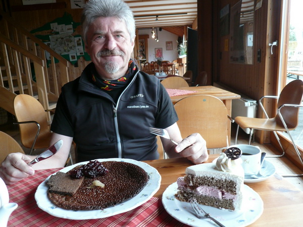 Zur Erholung geht es nach der Dusche ins Cafe im Haus im Moor. Hier probiere ich noch die typische Moorspezialität, den traditionellen Jan Hinnek Pfannkuchen aus Buchweizen mit Schwarzbrot und Preiselbeeren. Lecker wie auch die Buchweizentorte. Ein schöner Tag geht zu Ende und der Veranstalter freut sich, wieder einen neuen Teilnehmerrekord verkünden zu können. Leider ist die Bilanz bei den Marathonis schlechter (58 Finisher). Aber vielleicht notieren sich für nächstes Jahr einige Leser den Moormarathon, denn er hat es wirklich verdient.