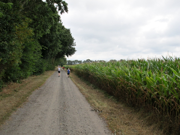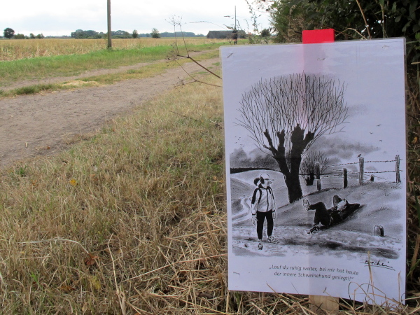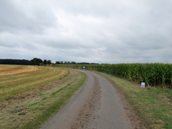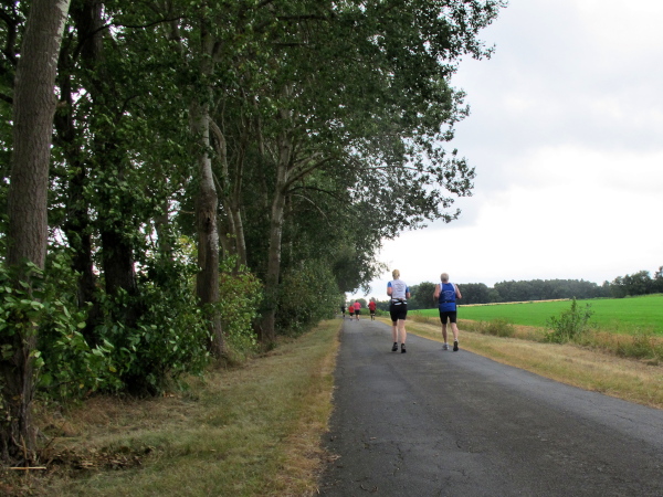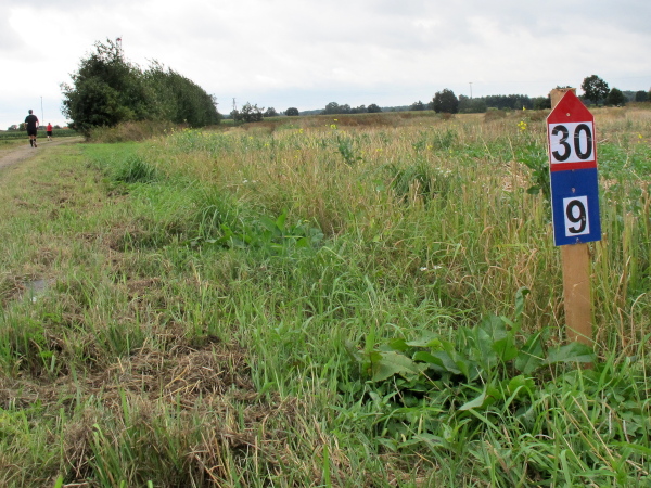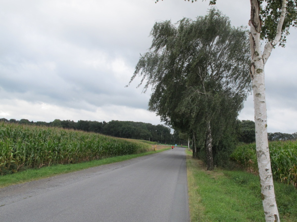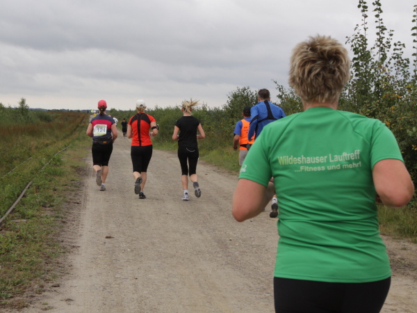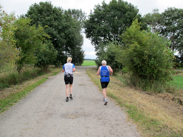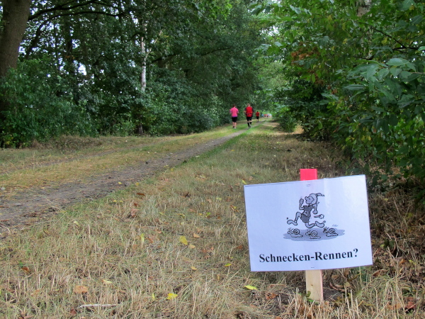 Nach einer kleinen Runde von 3 Kilometern zum Luttermoor sind wir zurück bei Start und Ziel und haben einen ersten, intensiven Eindruck gewonnen. Der folgende Weg ist jetzt zunächst besser, schnurgerade und staubig, der Wind lästig. Mir soll keiner mehr erzählen, ein Lauf auf dem platten Land sei ein einfacher.