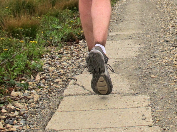 Kürzlich habe ich in einem Laufbericht von einer Bilderbuch-Landschaft gesprochen. Jetzt könnte ich das wieder und würde damit etwas ganz anderes meinen. Auf der eine Seite des Weges, der so beschaffen ist, dass einem beim bloßen Hinschauen schon die Füße schmerzen, blüht das Heidekraut, die störrischen Gräser biegen sich im Wind. Schau ich nach links, blicke ich über schwarzes Moor mit zerklüfteten Wasserflächen. Über uns die graue Wolkendecke, die sich stellenweise immer mehr bedrohlich verdunkelt.