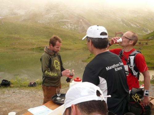 Ein Punkt, der mir besonders positiv aufgefallen ist, sei an dieser Stelle noch erwähnt. Die Präsenz von Samaritern und Bergrettung war spürbar und ihr Auftreten und Verhalten strahlte auf der ganzen Strecke eine hohe Kompetenz aus, die ein Gefühl von Sicherheit vermittelte, das ich bei einem Traillauf besonders schätze. Ich gehe jetzt nicht näher darauf ein, wie ich das auf dem Weg hinunter nach Engelberg dann auch noch rein praktisch erleben konnte – durfte – musste; es hat aber den Eindruck bestätigt…