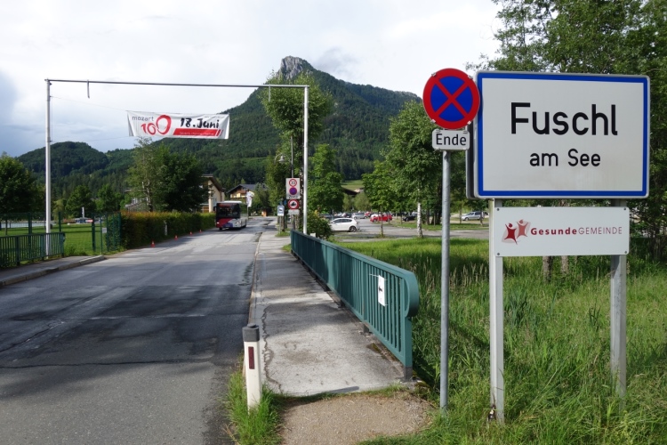 Die Strecke führt nun komplett um den Fuschlsee herum. Im stetigen leichten Auf und Ab führt sie uns nach Fuschl am See, einer gesunden Gemeinde, so das Ortseingangsschild. In Fuschl am See ist hinter Edenbergers Cafe am See unmittelbar nach Km 77 eine weitere Labe. Sie ist direkt am See gelegen und es ist schön, hier zu sitzen.