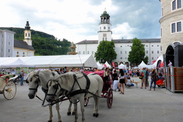 Samstag 5 Uhr morgens: Start auf dem Residenzplatz in Salzburg. Ein bemerkenswert schöner Startort! Es gibt Alte und Neue Residenz, im 16. Jahrhundert für die Erzbischöfe erbaut. Erzbischöfe durften den Kaiser des Heiligen Römischen Reiches Deutscher Nation wählen. Das Recht, diesen Staatsnamen zu tragen, erhielt das Staatsgewusel, weil die deutschen Kaiser sich verpflichtet hatten, den Papst, den Stellvertreter von Christus auf Erden, zu schützen. 844 Jahre, sechs Monate und vier Tage bestand das übernationale Reich, bevor es von Napoleon zerlegt wurde.
