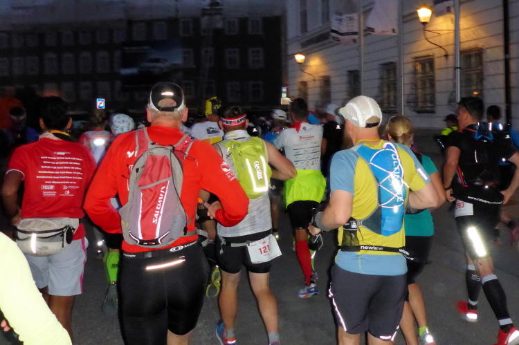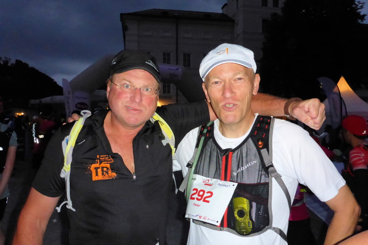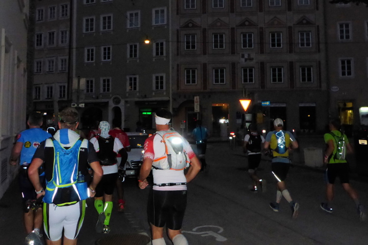Ich genieße den Residenzplatz: Stift St Peter, Michaelskirche, Residenzbrunnen, Mozartplatz, und natürlich den eleganten, freistehenden Dom mit seiner blendenden Fassade aus Marmor. Unter dem Dom soll sich ein geheimnisvoller See mit spiegelglatter Oberfläche befinden, der den Dom vor schweren Erdbeben schützt. Diese historische Atmosphäre lässt mich vergessen, dass bei diesem Lauf krasse Kaliber aus aller Welt antreten. Wir müssen rechtzeitig in den Startblock, Kontrolle der Pflichtausrüstung.