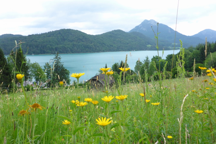 Auf dem glasklaren Fuschlsee dümpeln kleine Kähne, in denen „Sportangler“ sitzen und lautstark Bier trinken. Da fragt man sich, worüber die Forellen nun reden. Der Fuschlsee endet nach 10 Kilometern in einer wunderschönen Moorlandschaft, die mit den weißen Puscheln des Moorgrases garniert ist. Von einem Holzsteg aus sieht man fette Forellen in einem glasklaren Priel. Wenn man „Fore“ hört, soll man in Deckung gehen, sagt ein Schild am Golfplatz und meint damit nicht die Gefahr, die von –„ Fore-llen“ ausgeht. Der Golfplatz hier am See besteht aus einem fußballplatz-großen Stückchen im Sumpf, in dem sich zwei „Sportler“ wichtig machen, indem der eine die Fahne hochhält, während der andere versucht, das Loch zu treffen. Als ich den „Golfplatz“ umrundet habe, steigen die beiden sichtlich erschöpft in einen Van und lassen sich zum nächsten Loch fahren.
