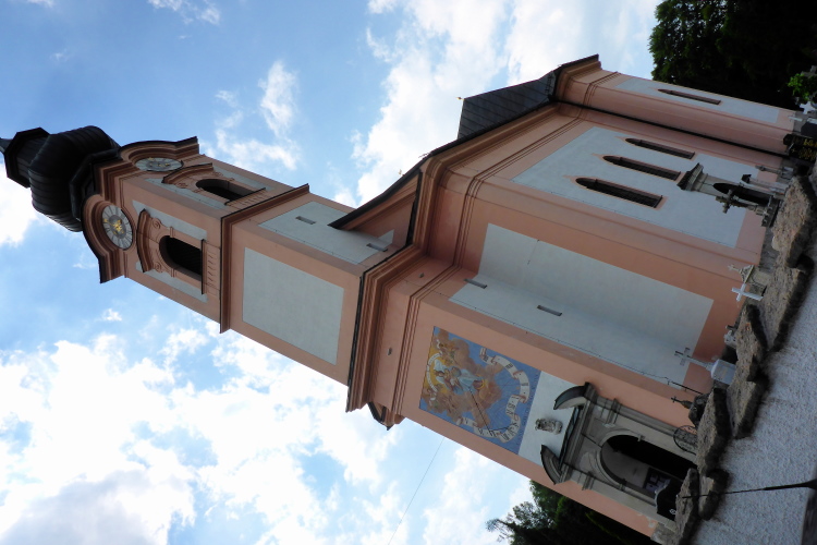 Die mittelalterlichen Mirakelbücher verzeichnen Tausende von Wunderheilungen durch das Hl. Wasser. Leopold I betete hier, als er 1683 die Nachricht von der Befreiung Wiens von den Türken vernahm. Die Legende, wie Wolfgang zu seinem Namen kam, muss ich noch erzählen: Er warf also von seiner Klause aus sein Beil hinab (das Beil ist im Hochaltar der Kirche in St Wolfgang, km 54 zu sehen). Dort ,wo das Beil niederfiel, sollte seine Kirche stehen. Beim Bau derselben half ihm der Teufel gegen das Versprechen, ihm als Lohn die Seele des ersten Wesens zu geben, das die Kirche betreten würde. Wolfgang schickte einen Wolf hinein, den der Teufel sogleich aus Wut zerriss. So kam der Heilige zu dem Namen „Wolfgang“.