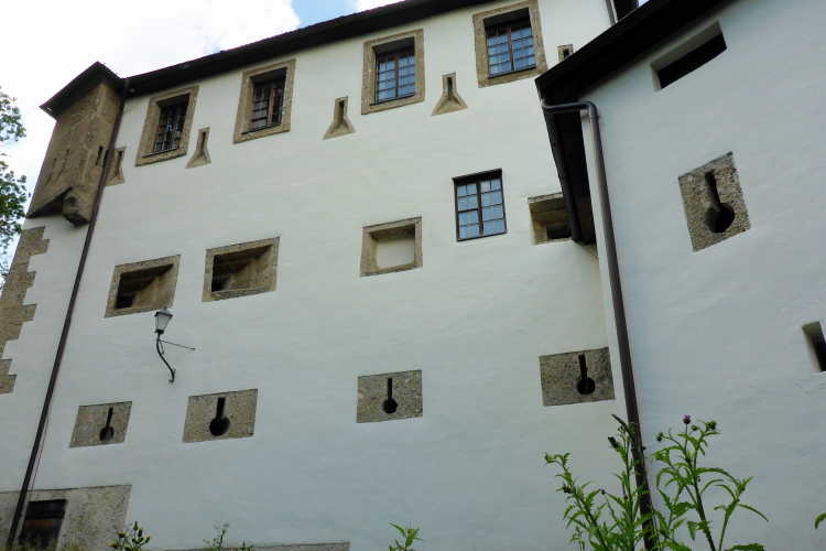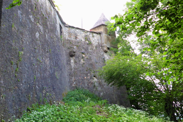 Selbst, wer „Wolfgang“ genannt wird, wird kaum wissen, dass der Falkenstein wegen seines Namenspatrons einst der viertwichtigste Wallfahrtsort der Christenheit war. Oberhalb der Laufstrecke ist die Wallfahrtskapelle zu sehen. Dort ein Gemälde, wie Wolfgang die heilige Quelle mit seinem Beilwurf fand. Die Wallfahrtskapelle besteht aus den Resten vier weiterer Kapellen: die Kreuzkapelle, aus den Steinen, die die Pilger zur Buße hinaufgetragen haben, ein Kapelle mit einer drehbaren Steinsäule (ist jetzt in Salzburg zu sehen, die Steinsäule wurde zur Buße gedreht). Eine Kapelle mit der Legende über Wolfgang. Und die Kapelle mit der Heiligen Quelle. Daneben eine Nische, in dem der Körperabdruck vom Hl Wolfgang im Stein zu erkennen ist.