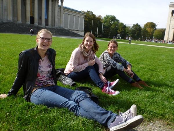 In der Oberföhringer Straße fallen mir drei Mädels auf, die ich schon früher gesehen habe. Neugierig ist der Fotograf, fragt nach ihrem Heimatland. Da schwingen sie wie verrückt die Luxemburger Flagge.
