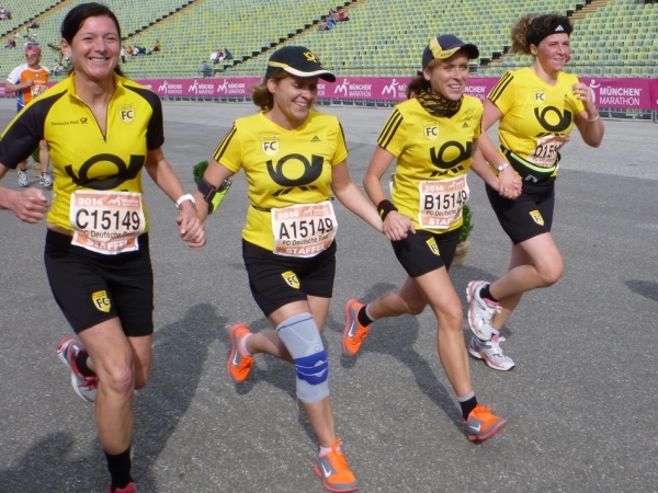 Viele Freunde sehe ich auf ihren letzten Meter ins Ziel, doch auf einen kann ich verzichten. Das ist der, der mich piesackt, als ich über den Zaun klettere. Der Muskelkrampf. Der olympische Rasen gleicht einem Heerlager. Zopf, Brezen und Schneider Weiße, dafür laufen wir 42 Kilometer gern. Wie es meinen Vereinskollegen gegangen ist? Alle sind gut durchgekommen. Ersttäter sind dabei und einer hat eine neue Bestzeit: Filippo. Aber wie es für einen Ferrari gehört: Mit Boxenstopp, bei den Sanis, wo das Fahrwerk neu eingestellt werden muss wegen Muskelkrämpfen. Das ist Marathon. Mein Fazit mit drei Worten: I mog di.