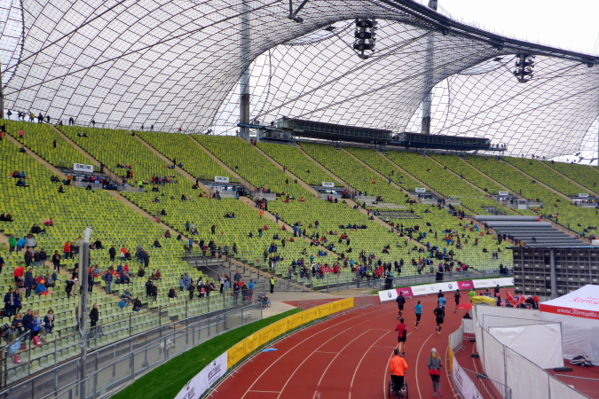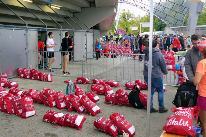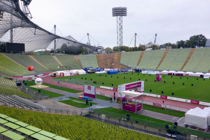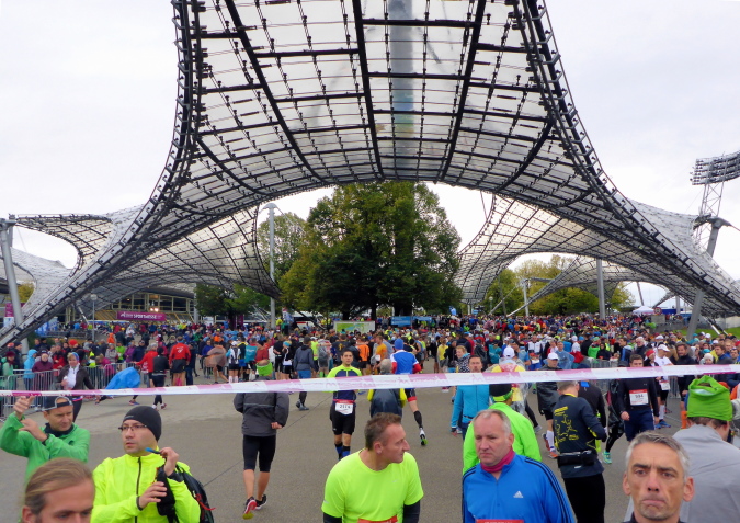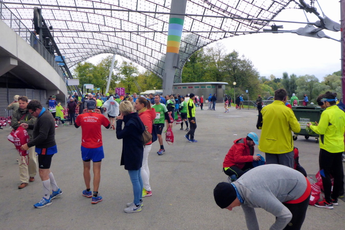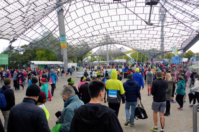 Es wird meine vierte Teilnahme in München und im Laufe der Jahre haben sich diverse Details des München Marathons auch geändert. So auch dieses Jahr. Die Startunterlagen kann ich nun in der Olympiahalle abholen. Schon das ist neu für mich, bisher kenne ich die Olympiahalle nur von zahlreichen Konzerten her. Da ich dank der kurzen Anreise erst am Sonntagvormittag nach München fahre, versäume ich nicht nur den Trachtenlauf, der seit Jahren schon immer am Samstag stattfindet, sondern auch die Marathonmesse. Am Sonntag sind die Stände in der Olympiahalle bereits abgebaut und es gibt nur noch die Möglichkeit der Abholung der Startunterlagen bzw. der Nachmeldung.