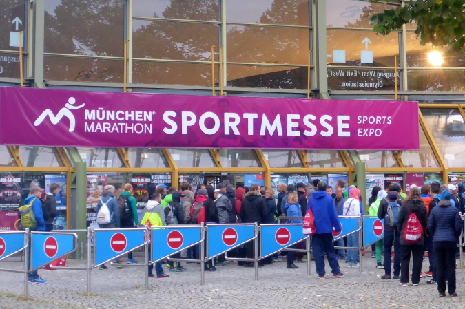 Ab acht Uhr ist die Olympiahalle geöffnet und bereits eine viertel Stunde zuvor bilden sich Schlangen vor dem Eingang. Pünktlich öffnet sich eine Tür und doch zieht es sich etwas, bis auch mir der Zutritt gewährt wird. Das ist heute nicht gerade angenehm, da es mit rund acht Grad lausig kalt ist und ein unangenehmer Wind um die Halle streicht. Aber das Warten hat einen guten Grund. Ohne Taschenkontrolle und gültiger Anmeldebestätigung gibt es keinen Zutritt. Begleitpersonen müssen draußen bleiben. Die Abholung der Startunterlagen ist, sobald man erst man in der Halle ist, rasch erledigt.