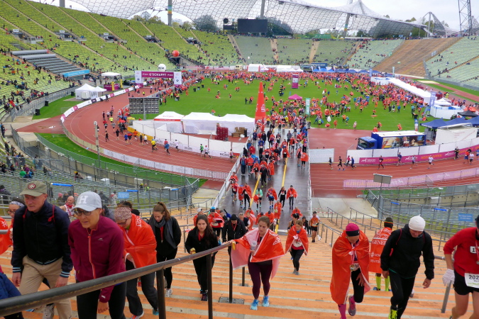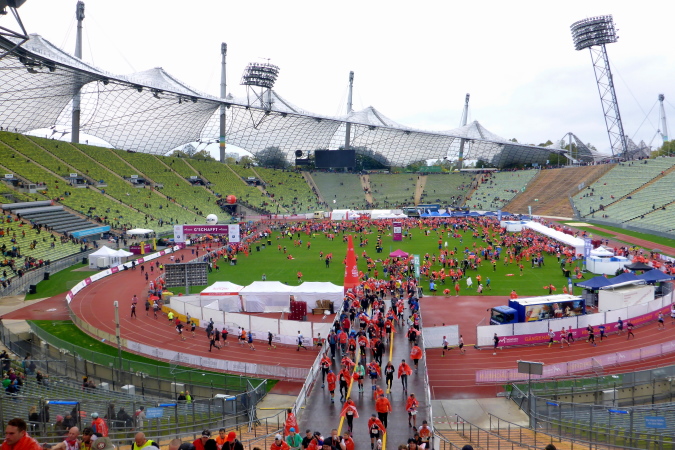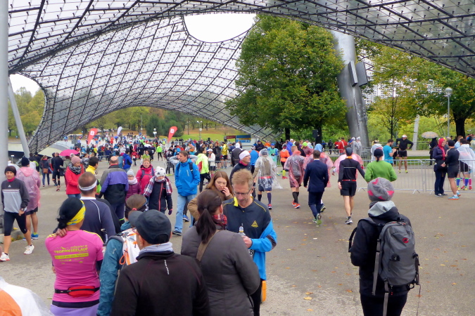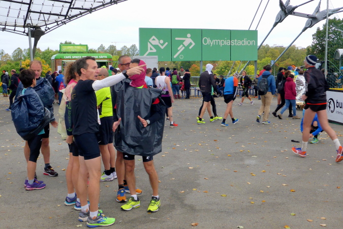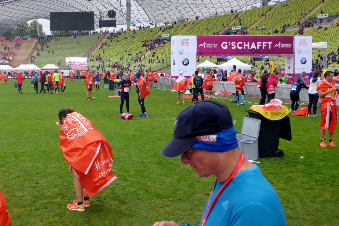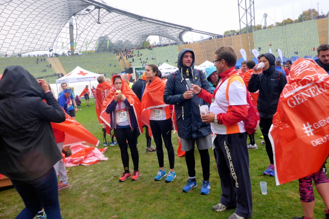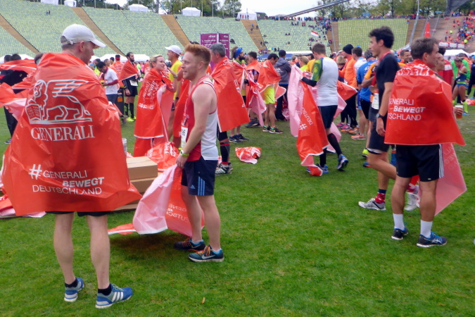 Ein allerletzter Höhepunkt fiel diesmal wegen der kühlen Temperaturen aus: In der Sonne auf dem Rasen des Olympiastadions liegen, die Atmosphäre genießen und mit Lauffreunden Erlebnisse austauschen. Es ist einfach zu kalt und alle Finisher suchen relativ schnell das Weite.