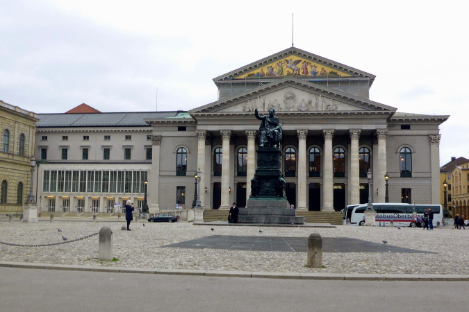 Das Propyläen steht an der Westseite. Es wurde von Leo von Klenze im Auftrag König Ludwig I. in Form eines Tempeleingangs errichtet. Rechterhand erkenne ich die Glyptothek, das Ludwig I. als Museum für die Sammlung antiker Skulpturen in den Jahren 1816 bis 1830 errichten ließ. Linkerhand säumt die staatliche Antikensammlung den Odeonsplatz, der in den Sommermonaten auch Schauplatz großartiger Konzerte ist und eine herrliche Kulisse abgibt. Vor ein paar Monaten habe ich hier Aerosmith erlebt.