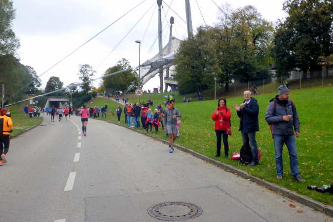 Nun liegen nahezu alle Höhepunkte des München Marathons hinter mir. Jetzt wartet eigentlich nur noch ein Highlight auf mich und das ist natürlich auch nicht ohne: Der Einlauf durch das Marathontor in das altehrwürdige Olympiastadion. Aber noch sind vier Kilometer zu laufen. Aber der Olympiaturm ist schon bald zu sehen und zieht mich magisch an. Ich laufe schneller und kann noch einige Plätze gutmachen, bevor ich in den Olympiapark einbiege. Rechts das Stadion, dann das Marathontor.