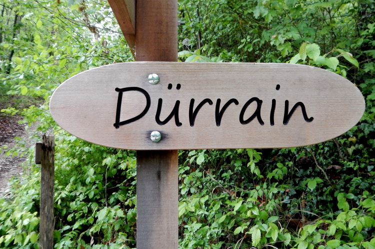 Der Wechsel der Seite in diesem kleinen Tal geht einher mit unvermeidlichen, dem Abstieg folgenden Anstieg. Schon das letzte Mal habe ich geschrieben, dass auch so schöne Namen wie Paradieshofstraße und Alter Paradiesweg nichts an der Tatsache ändern, dass ein Anstieg immer mit Anstrengung verbunden ist. Passenderweise heißt das Gebiet Dürrain (Dürrerain), der trockene, wenig ergiebige Abhang, doch nach dem kurzen Wegstück wartet die nach sieben Kilometern schon passierte Wasserstelle beim Geispel.