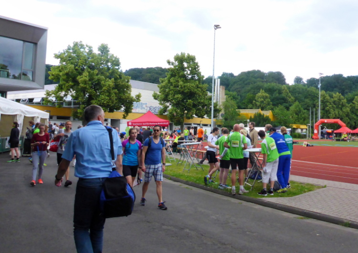 Also, Startnummernausgabe und Ziel des MANAMA (Marburger Nachtmarathons) ist immer im Unistadion in der Jahnstrasse und nicht in dem Stadion, bei dem die Startnummern des Lahntallaufes ausgegeben werden. Vom Bahnhof sind es etwa 2 Kilometer, immer an der Lahn entlang. Aber Vorsicht: Wer für den Marathon mehr als 4 Stunden braucht, der kann nicht mehr mit der Bahn zurückfahren, der Bahnhof wird frühzeitig abgeschlossen. Dafür sehen wir das alte Bahnhofsgebäude heute auf der Finishermedaille.