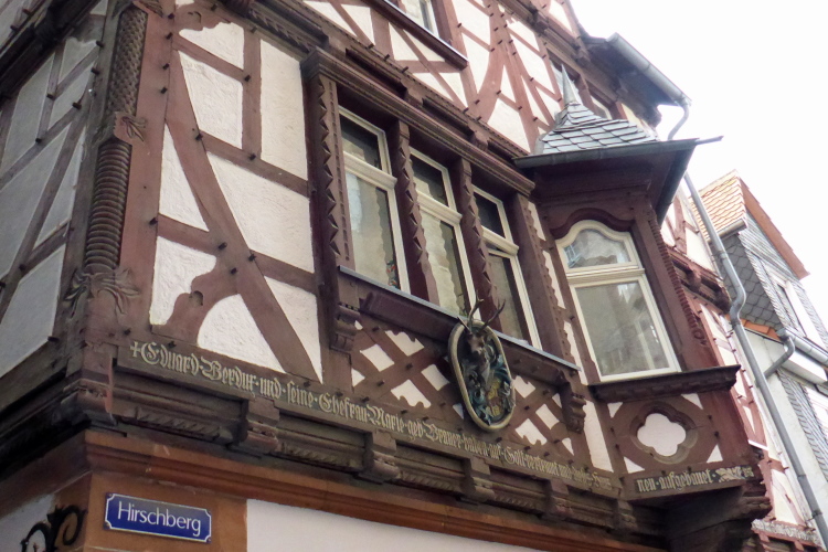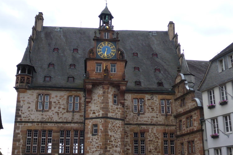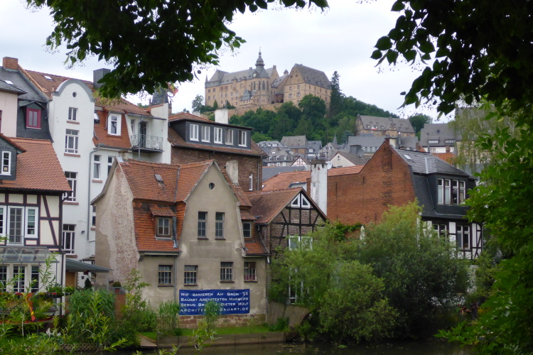 Im Steinbruch des Stadtteils Wehrda wurden Steine für den Reichstag gebrochen. Grund war, dass durch das komplizierte Auwahlverfahren auch ein Architekt aus Frankfurt an der Planung beteiligt war. Und der wollte Steine aus Wehrda für Berlin. Die Steine wurden über die Lahn transportiert, also nutzen wir auch nicht die Straße Richtung Berlin, sondern biegen ab, die Lahn hinunter.
