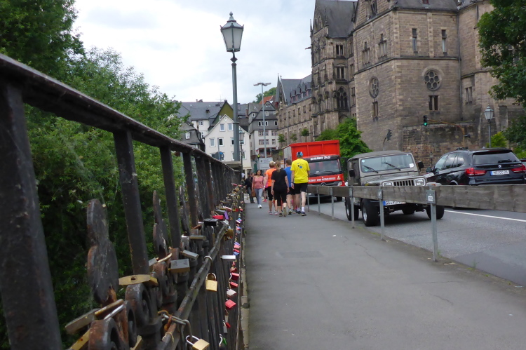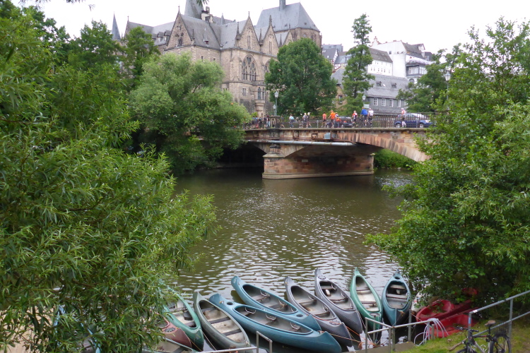 Die beginnt an der Hirsemühle, dann geht es über die Weidenhäuser Brücke hinauf zum Marktplatz. Der Professor für Nautische Archäologie hat mal seine Studenten zu einem „Tauchgang“ unterhalb der Brücke mitgenommen. Es wurden unglaubliche Dinge in der Lahn gefunden, sogar zerbrochene Trinkgefäße! Man vermutet nun, dass Studenten noch nie abgekochtes Wasser getrunken haben.