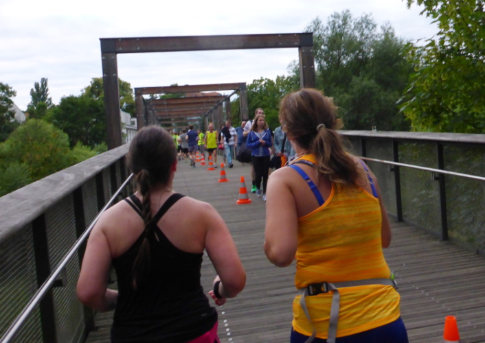 Letzte Runde. Die Runden sind nicht identisch. Aber klasse ist, dass man jeweils nach 10 Kilometern aussteigen könnte. Immer vor dem Unistadion, vor dem Hirsefeldsteg, dort, wo die Kontrollliste abhakt wird.