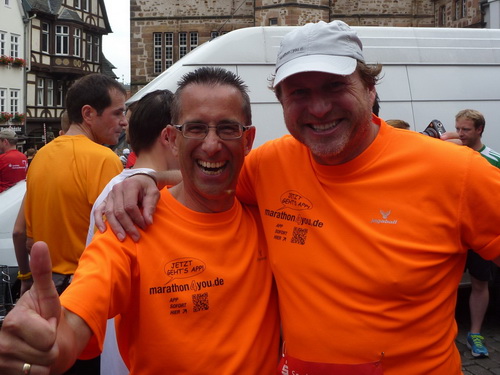 Es steht für Marco (Platz 4), den Gewinner des Hasetalmarathons letzte Woche, der heute zusammen mit über 100 Mitarbeiter seines Sponsors den Halbmarathon angeht. 115 Marathons hat er jetzt abgedongt. Er trainiert jeden Tag zwischen 20 und 30 Kilometer. Auch voll DongTada!