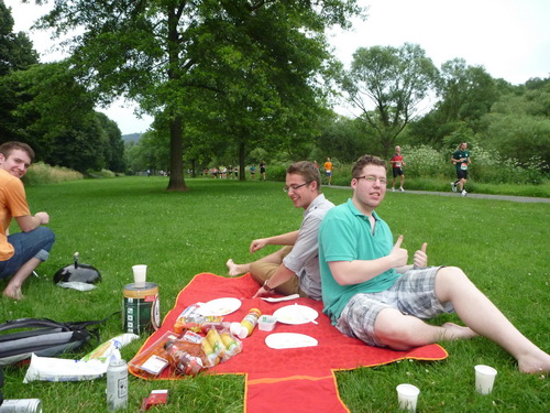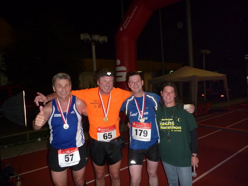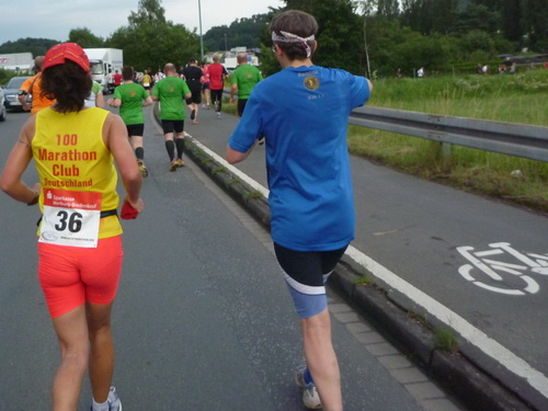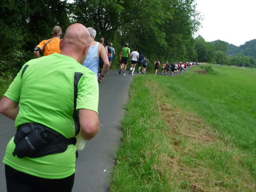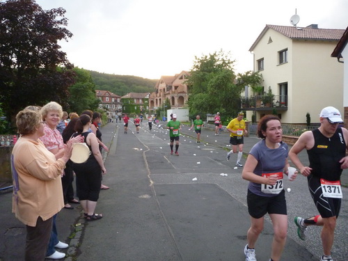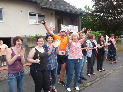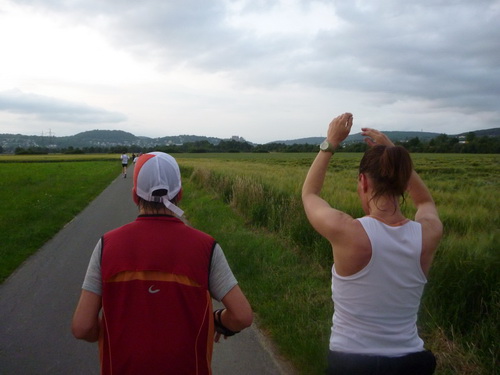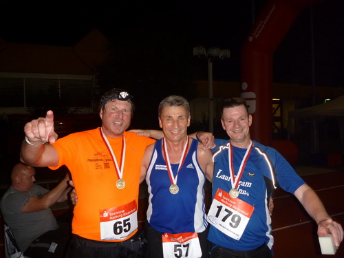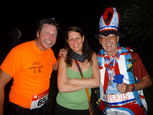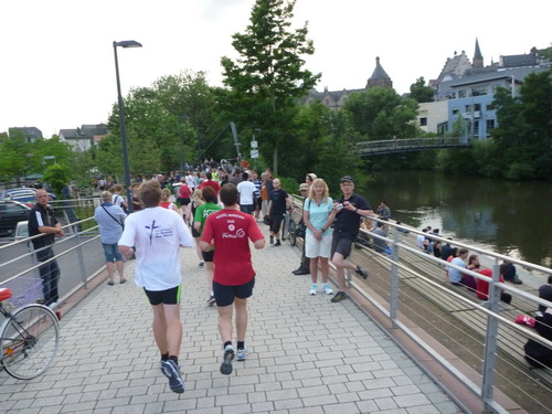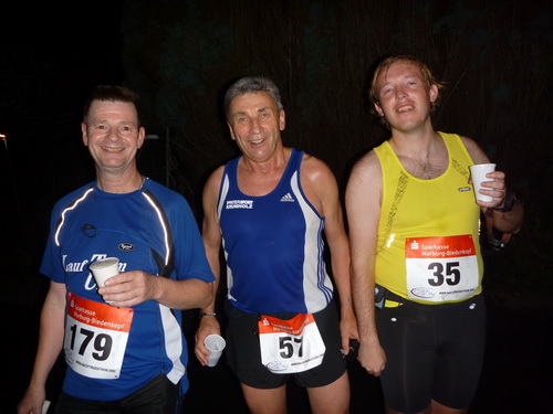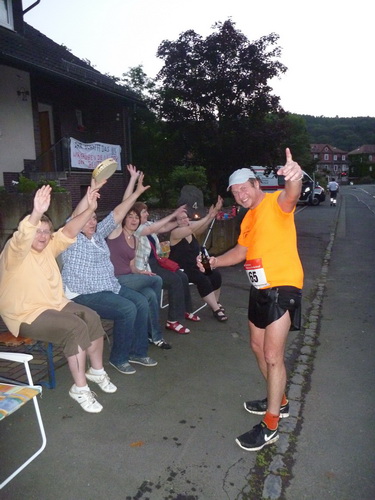 Es sind alles Studenten, die hier ihre erste Lauferfahrungen machen, 90 % der Läufer unter 30 Jahren. Das Lahntal bei 30 Grad und Schwüle niederzukämpfen, ist auch für mich heute unmenschlich, weswegen ich nach Mítternacht einen Treppchenplatz (von hinten) erobern werde.