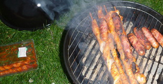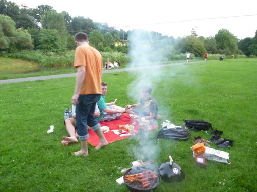 Auf der Lahnwiese liegt ein kleines kaltes Würstchen auf einem kleinen Grill, dessen dünne Rauchfahne sich über die schwülwarmen Feuchtwiesen breitet. Ich denke mir, das Bier müsste genauso kalt sein wie das Würstchen, aber leider ist dem nicht so. „Jungs, ich komme wieder!“ „Bring nen Becher mit!“ rufen die mir nach.