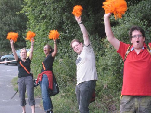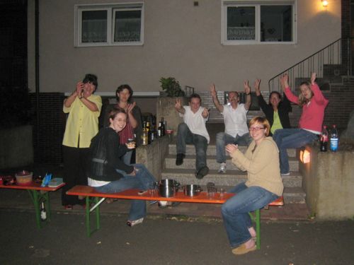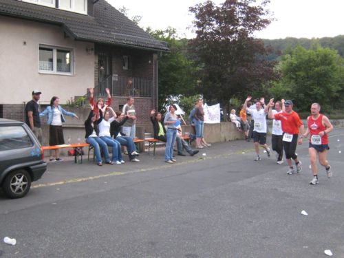 Wenige Meter danach passierten wir eine ganz ausdauernde Fan-Gruppe, die es sich vor ihrem Haus gemütlich gemacht hatte und tatsächlich bis zum Schluss hier ausharrte. Ob es wohl dieselben waren, wie die im Vorjahresbericht von Klaus erwähnten?