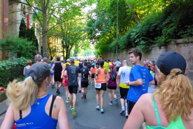 Wir „Ge“läufer nutzen die leicht abschüssige Strecke, um richtig Gas zu geben. Das ist normal hier, wird sich aber später rächen. Wie das halt so ist das beim Nacht(Halb)marathon.